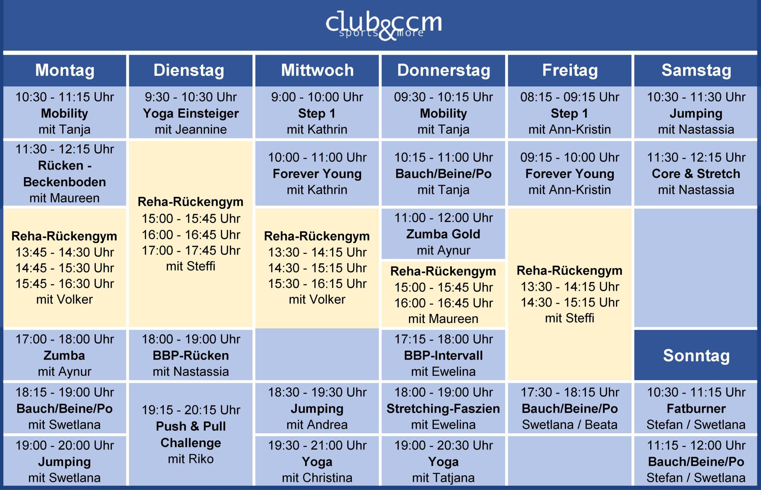 Sieben Tage die Woche volles Programm. Bei uns bekommt ihr täglich eine große Auswahl an Kursen unter professioneller Anleitung erfahrener Coaches.